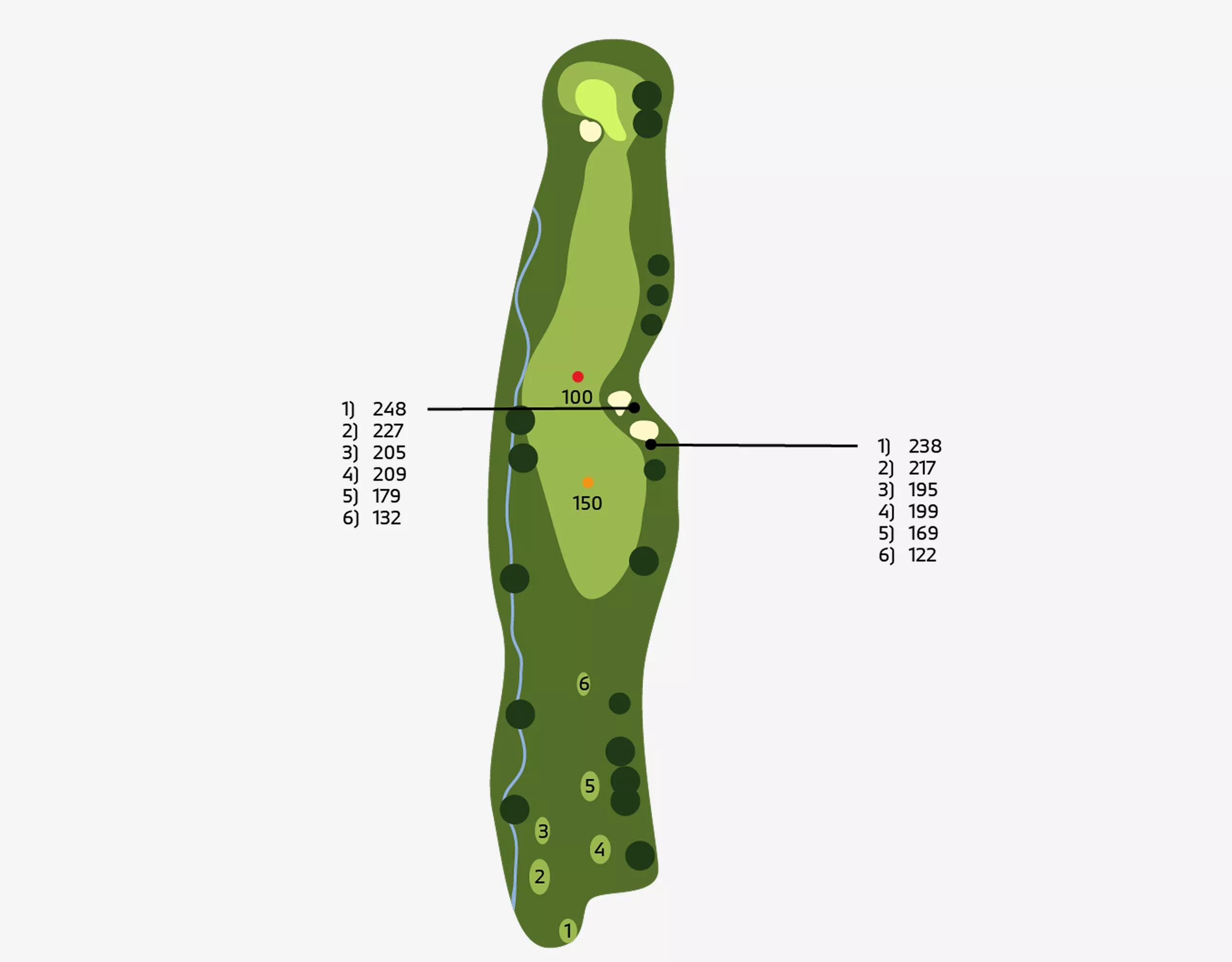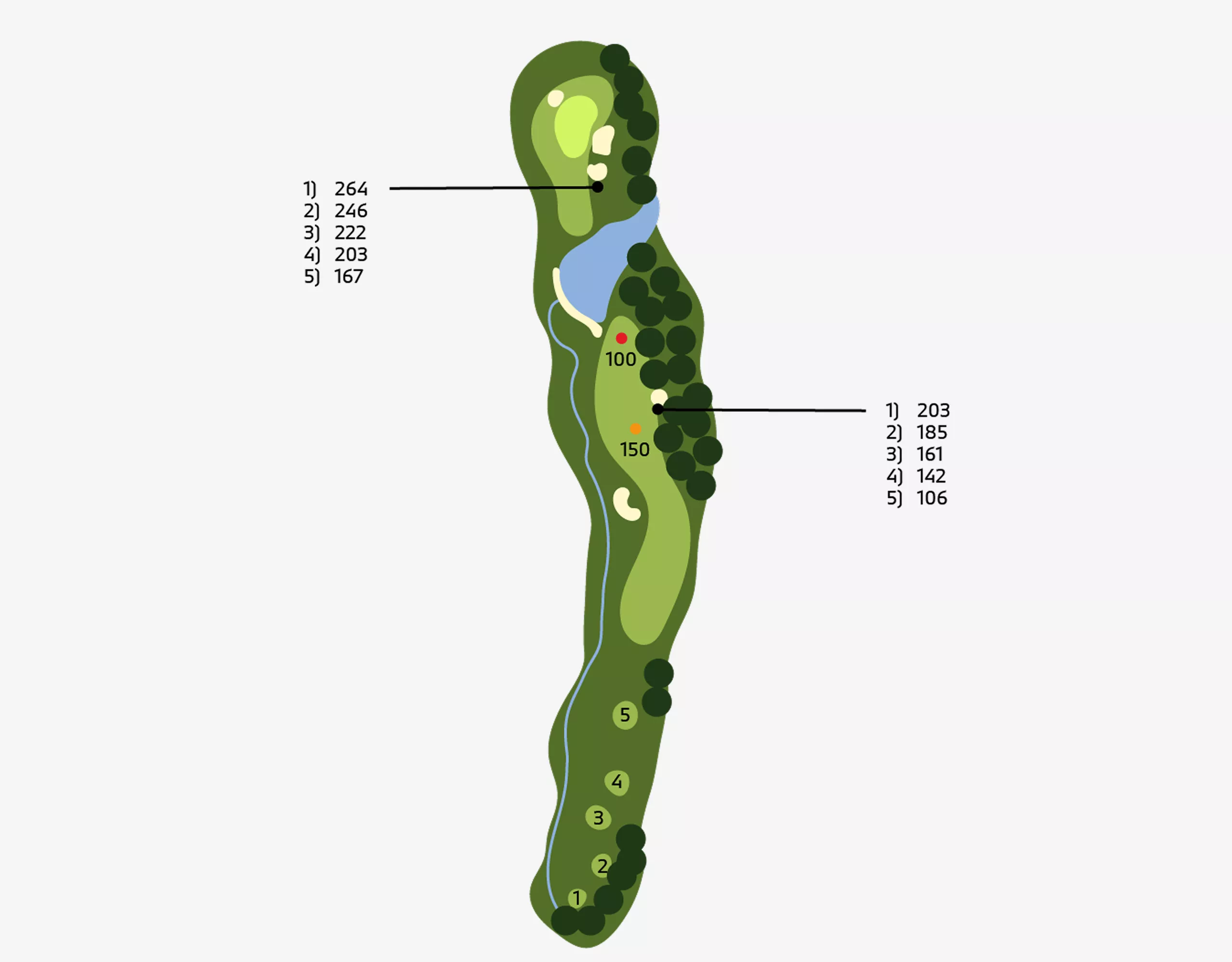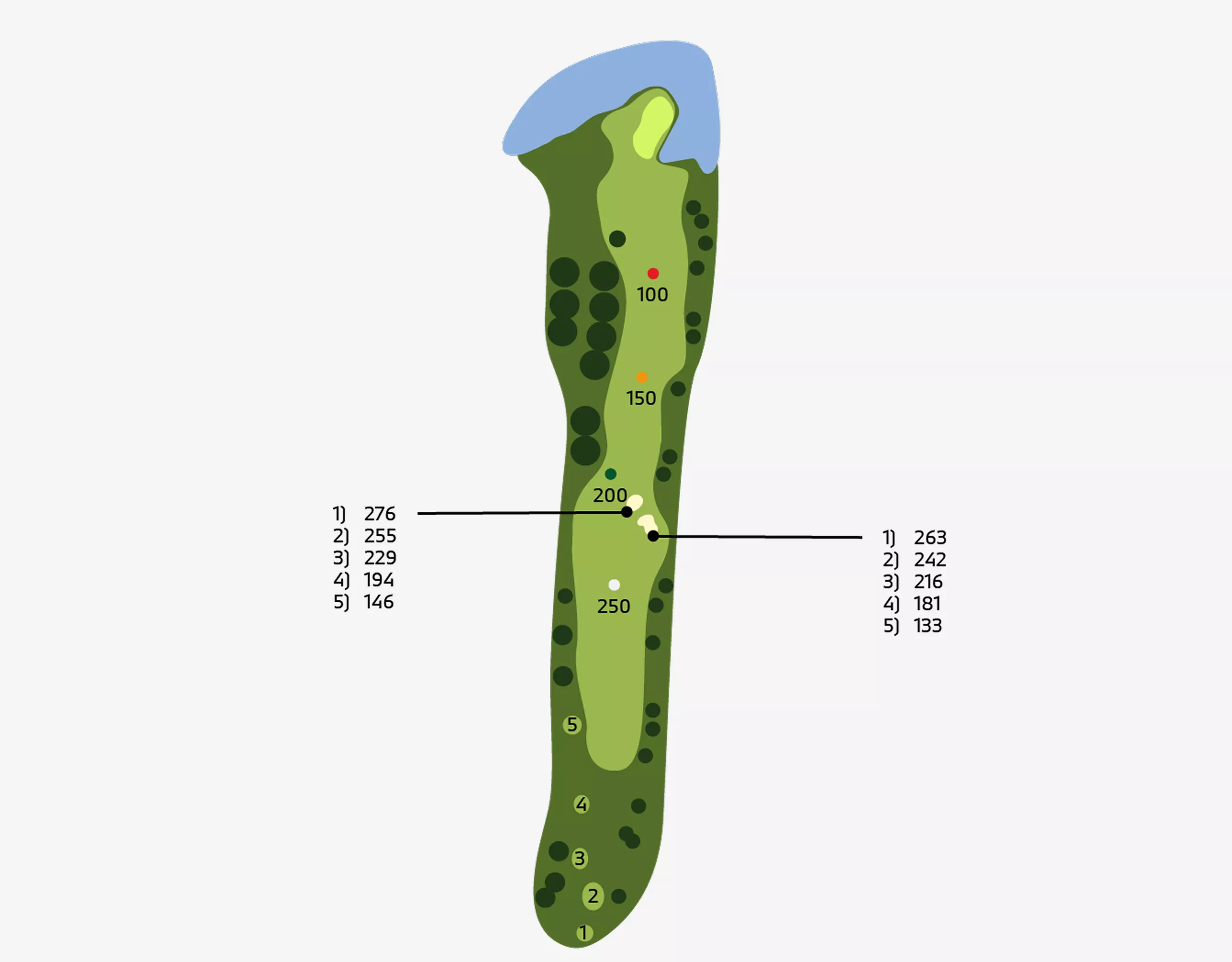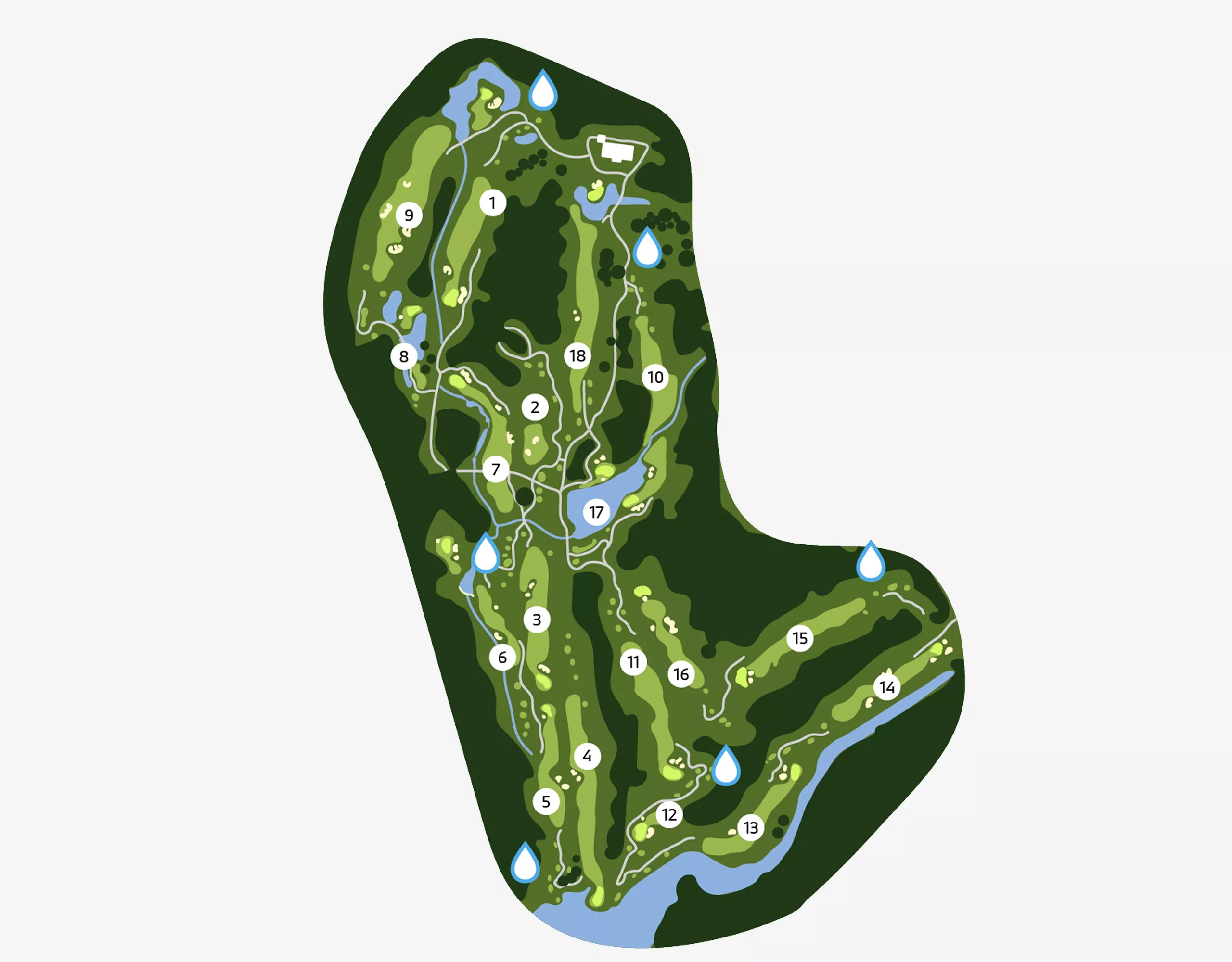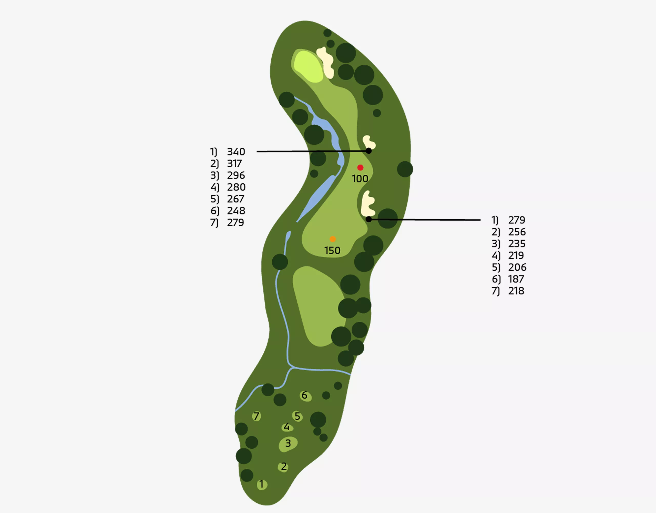 Holes: 1, 5, 7, 10 ( HalfwayHouse ), 12, 15.