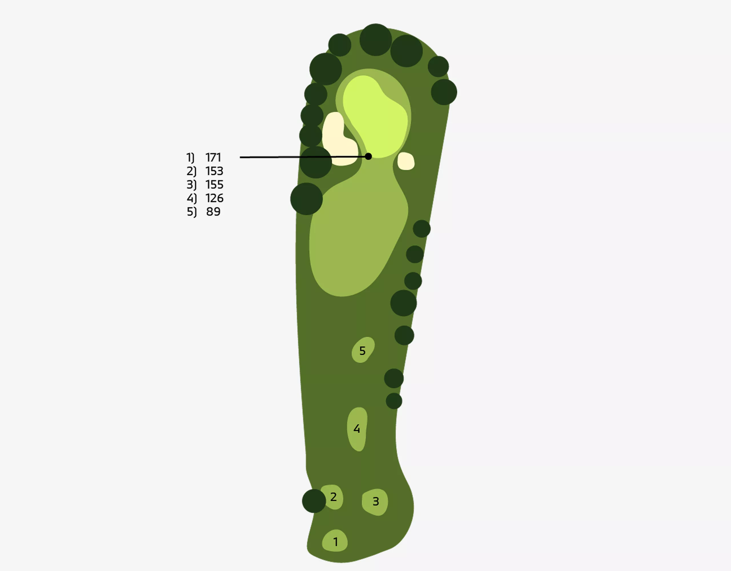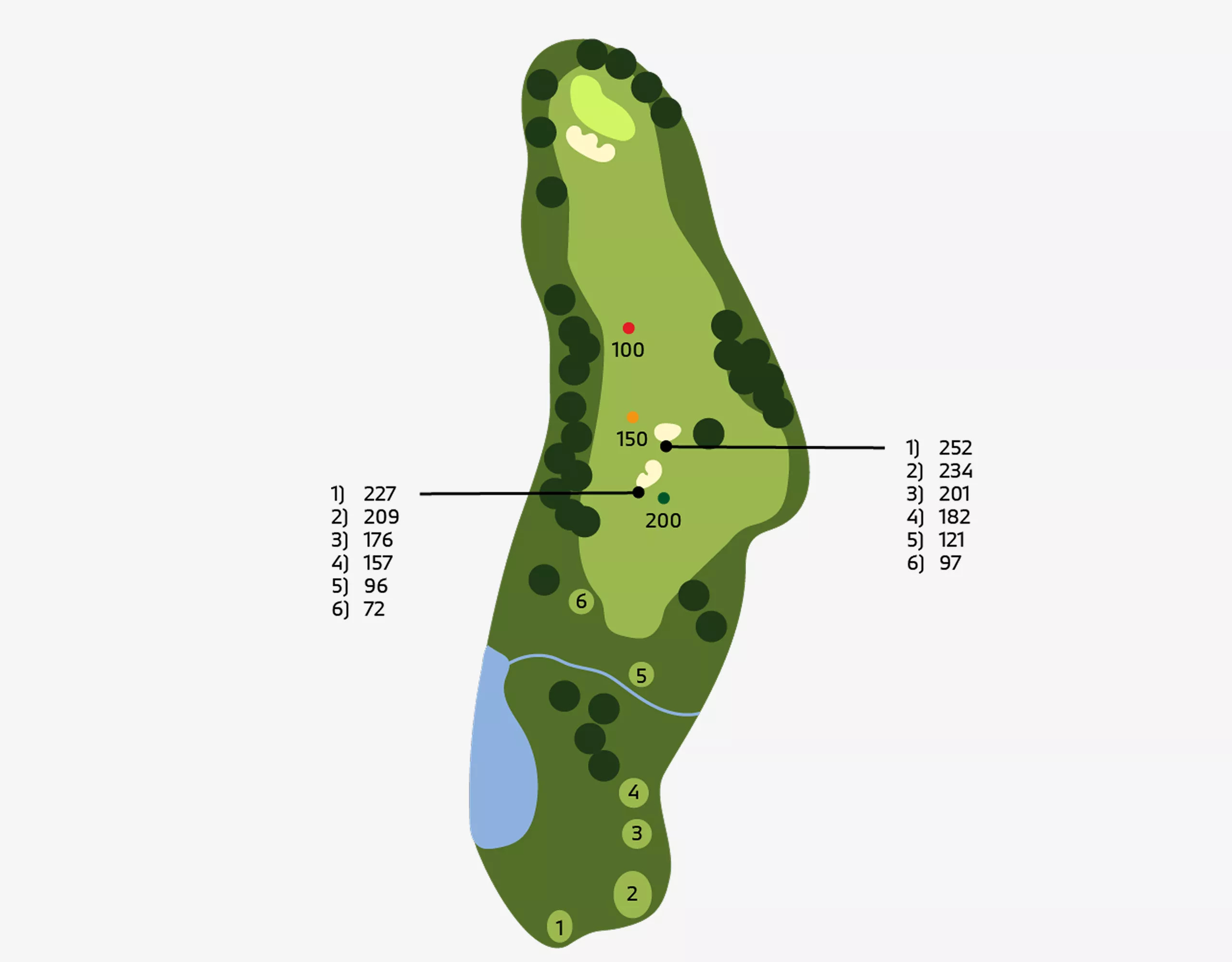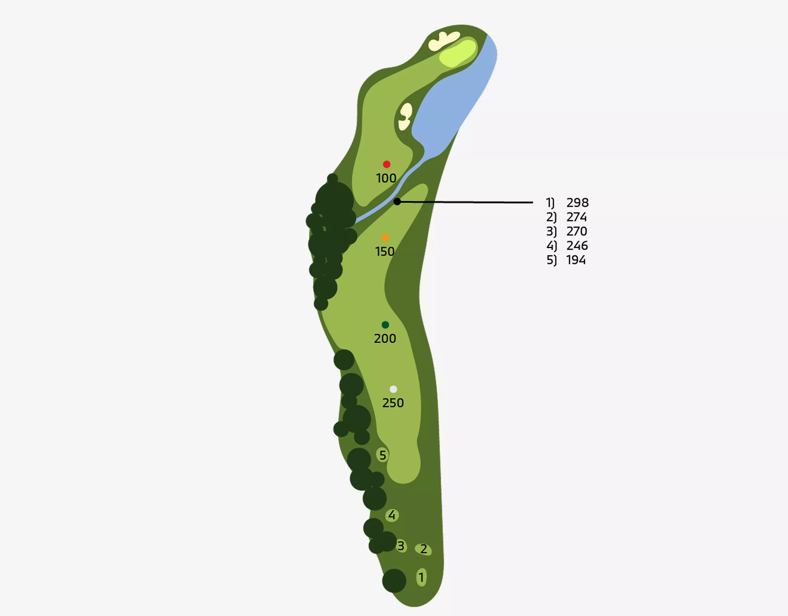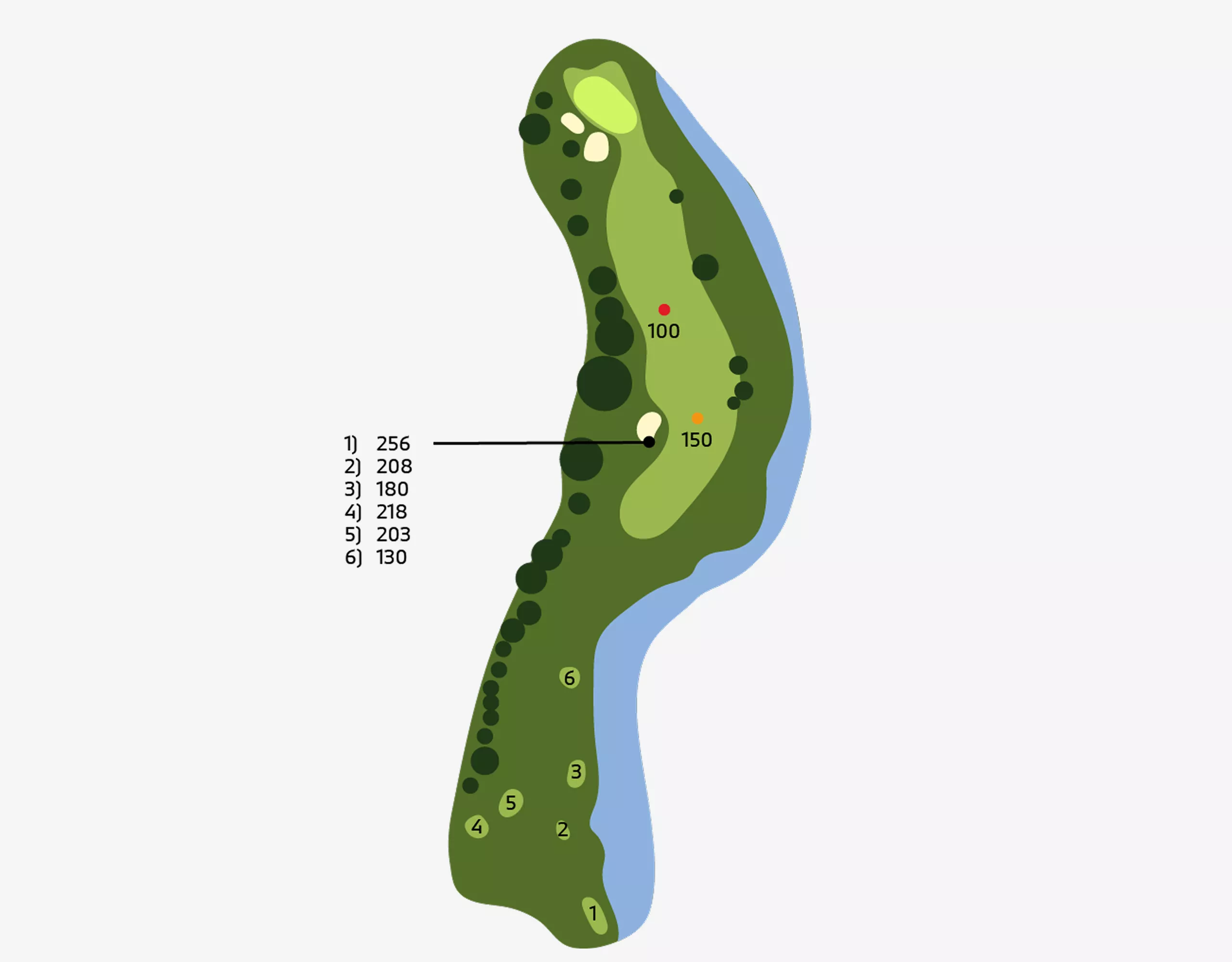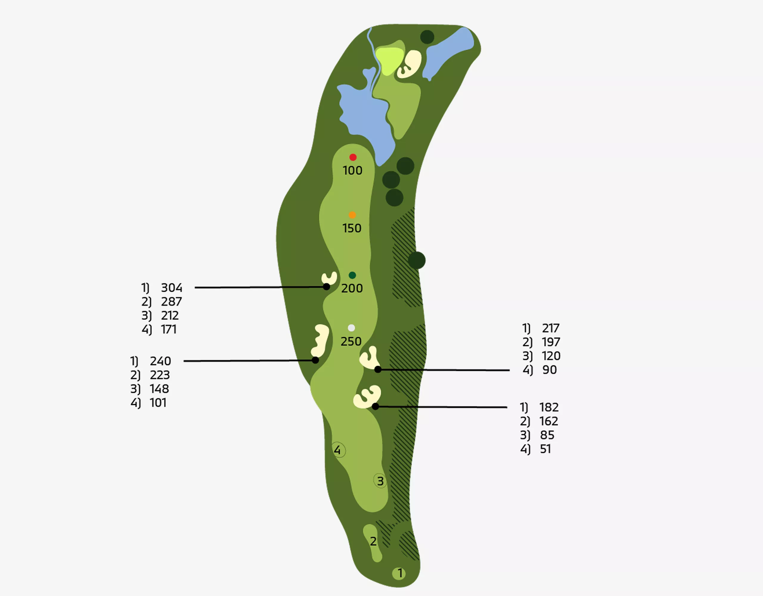 Holes: 1, 5, 7, 10 ( HalfwayHouse ), 12, 15.