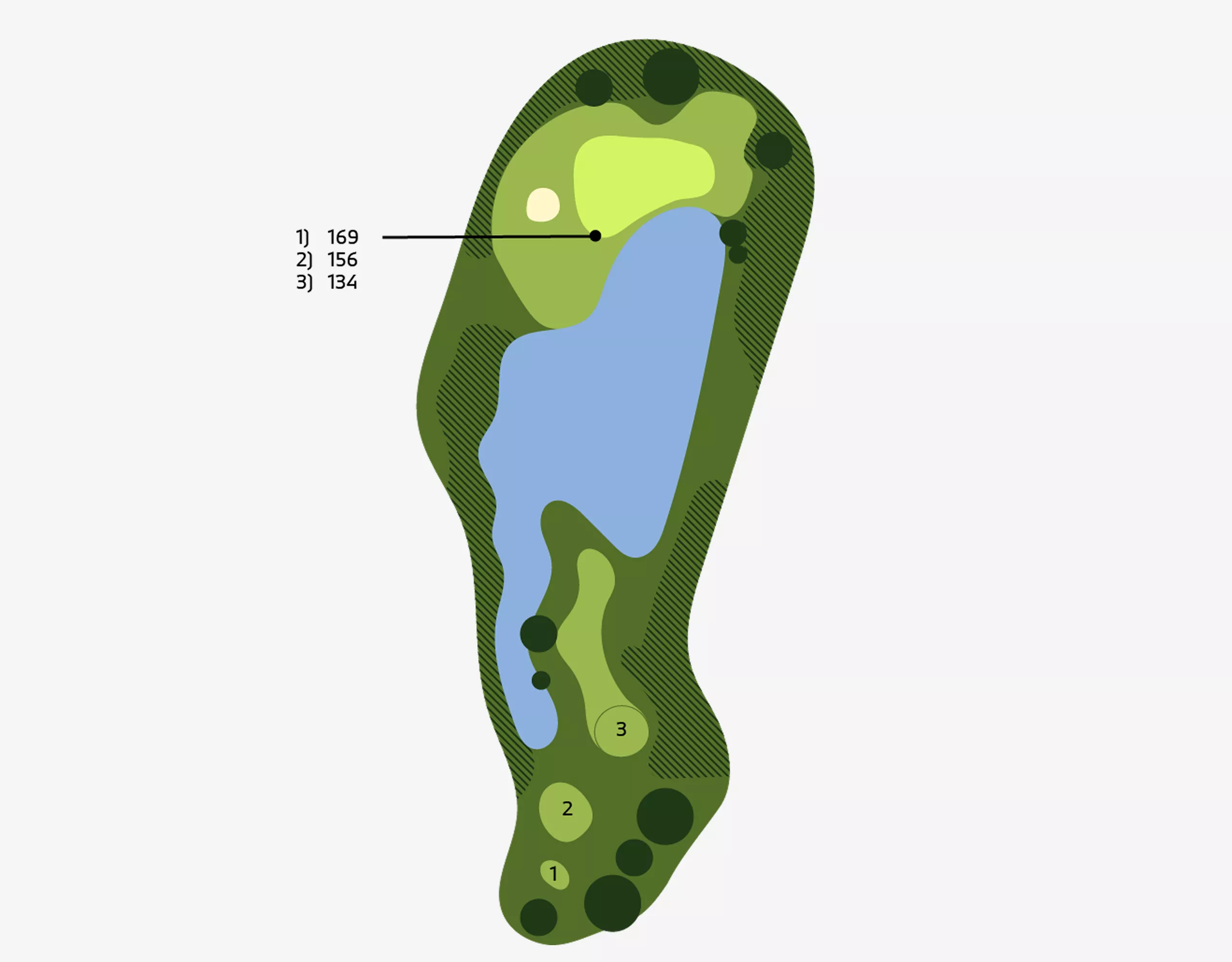 Intimidation is the main concern on our signature par 3! A well struck mid ironto a massive green should not involve the water!.
